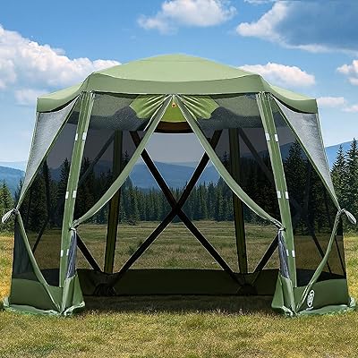 EVER ADVANCED Pop up Screen House Tent for Camping 11.5 x 9.8 ft, Instant Screened Gazebo Canopy with Netting, Portable Shelter Enclosure for Outdoor, Backyard