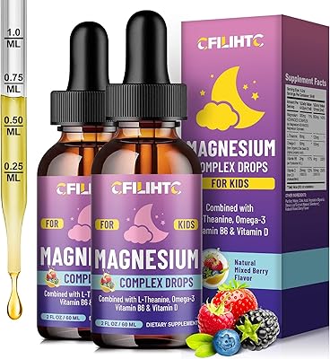 Kids Magnesium Liquid Drops-Magnesium Glycinate Liquid for Kids Supplement-wL-theanine, Omega-3, Vitamin B6, D3 - for Sleep, Relaxation, Brain, Bones - Mixed Berry Flavor, 4 Fl Oz